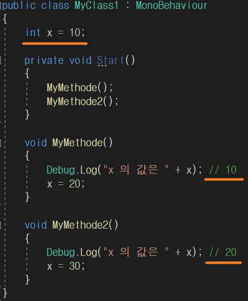 ⭐⭐⭐ 변수가 가지도 있는 값도 유지된다.