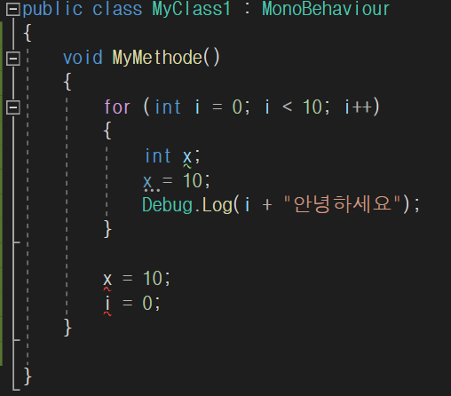 if 문이나 for문 안에 있는 변수를 밖에서는 사용 할 수 없다.