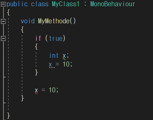 변수의 유통기한은 { } 괄호 안에 있는 변수는 끝날때 사라진다.