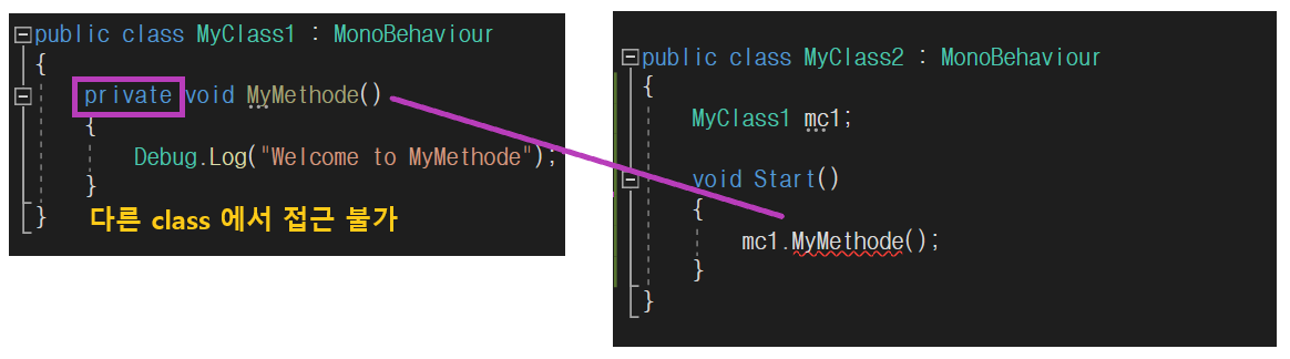 내가 작업한 클래스의 변수 및 함수를 다른 클래스에서 접근하는 것을 설정