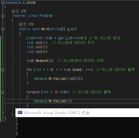 사용하기 위해서는 System.Collections.Generic 네임스페이스를 추가