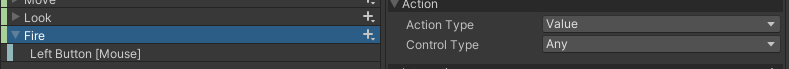 - nput Action: 입력 행동을 정의. 예를 들어 "점프", "공격" 등의 행동을 정의하고, 이러한 행동을 트리거하는 키 또는 버튼을 지정할 수 있다.