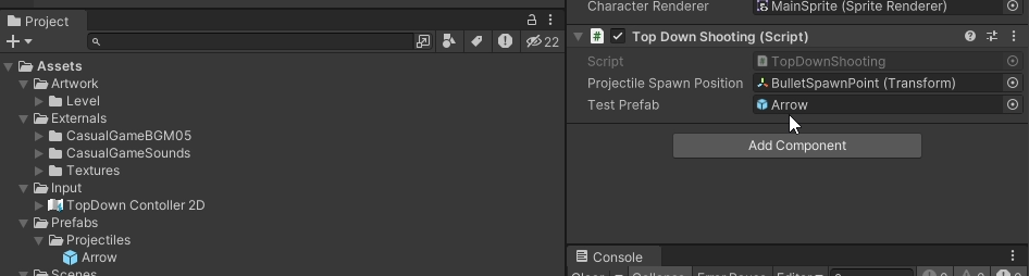 Player - TopDown Shooting - Test Prefab 에 연결