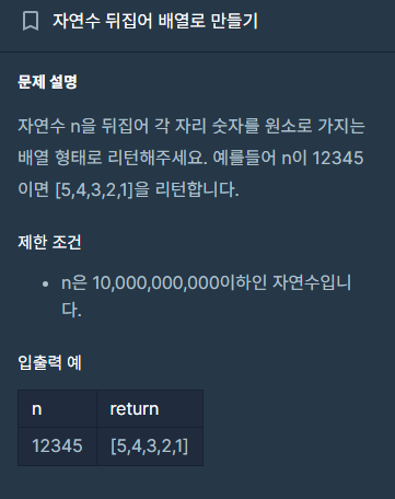 자연수 뒤집어 배열로 만들기