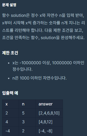 x만큼 간격이 있는 n개의 숫자