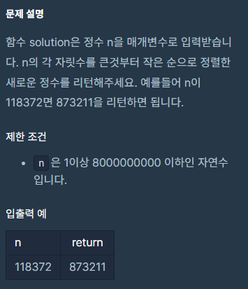 정수 내림차순으로 배치하기