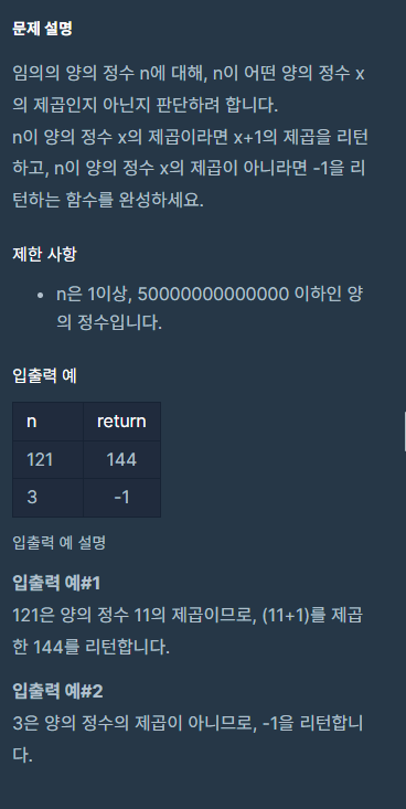 정수 제곱근 판별