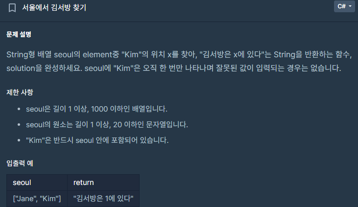 answer = Array.FindIndex(seoul, i => i == "Kim");