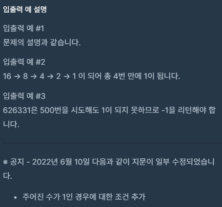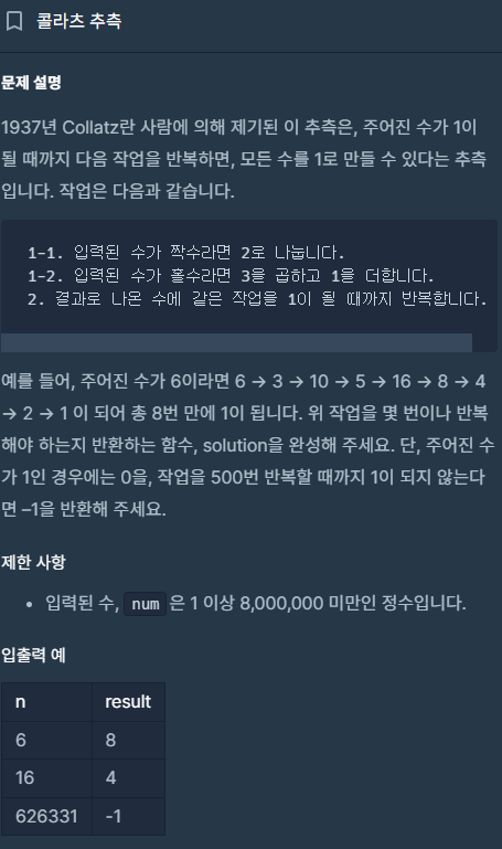 // 주어진 수가 1이 되면 반복 횟수인 i를 반환하고 함수 종료
