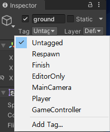 충돌 조작을 위해 우선 ground의 tag에 ground를 명시해준다.