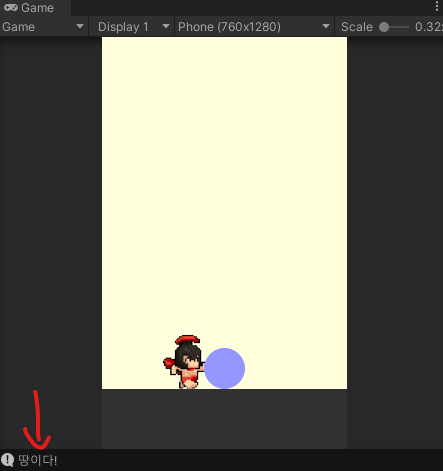 위와같이 충돌후에 Debug.Log("땅이다!"); 가 표출된다.