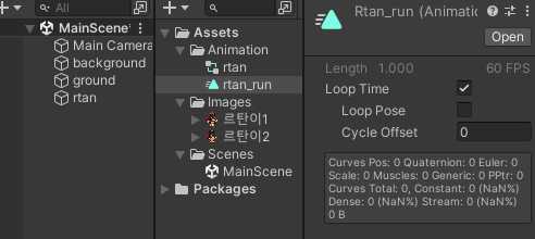 위와 같이 animation을 생성하고 이를 mainscene의 rtan에 넣으면 바로위에 rtan controller가 생성된다.