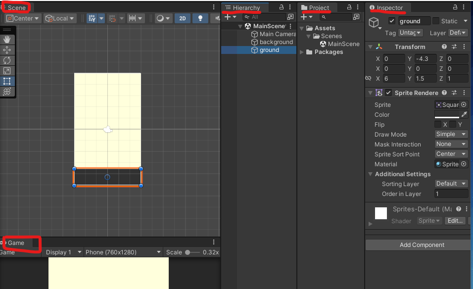 이후 오브젝트와 gound(땅)이 충동하게 세팅하기 위한 조건은